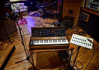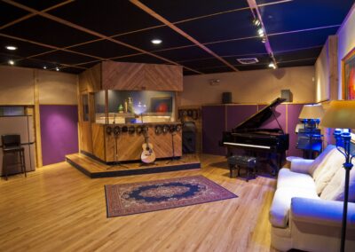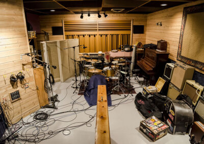 Studio A is equipped with beautifully maintained vintage analog gear, a large format console and professional digital recording technology. With two live rooms visible from the control room, Studio A offers the flexibility of isolating large ensembles and providing different acoustics for different applications. The microphone collection offers the greatest variety of choices in the Denver metro area, with more than 85 microphones in our closet. The well-designed room allows our engineers to run the sessions seamlessly, fostering a space for the artist’s creativity to bloom.